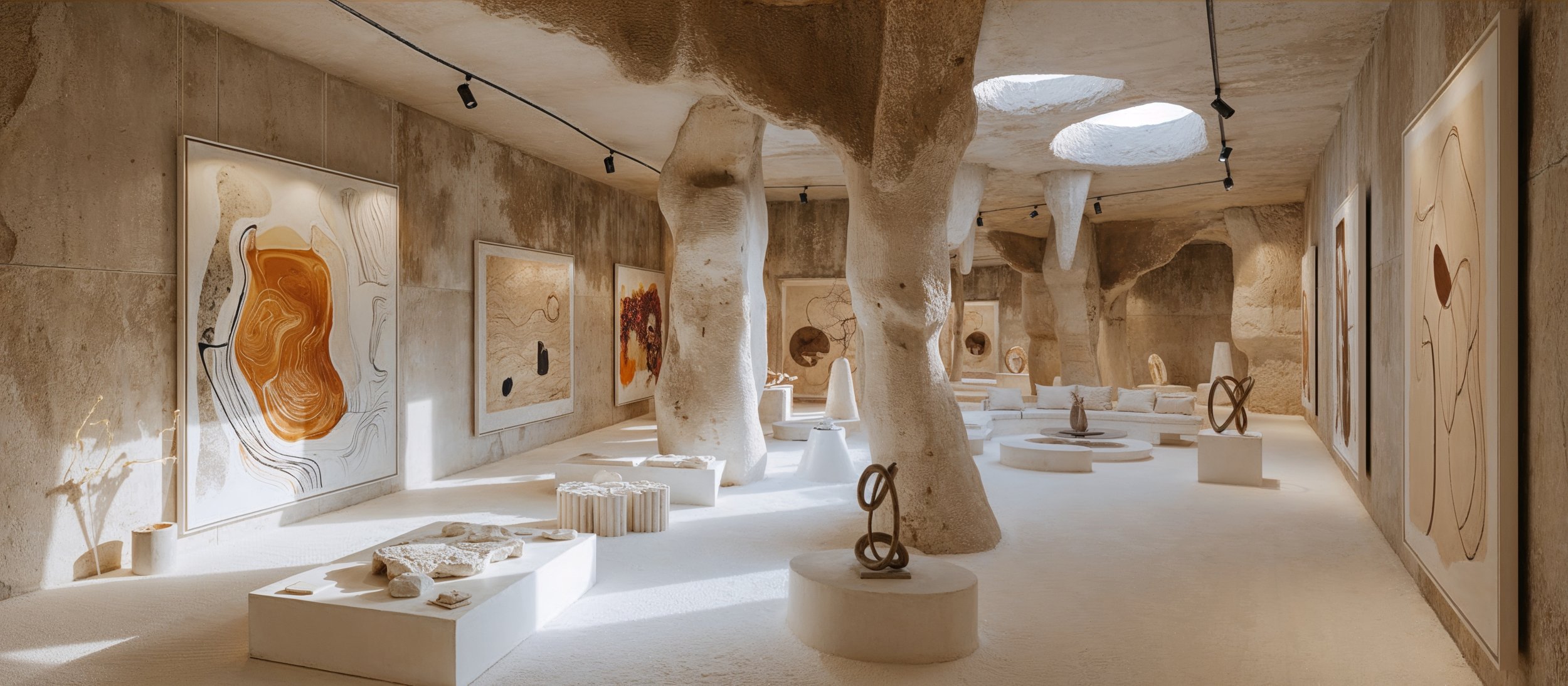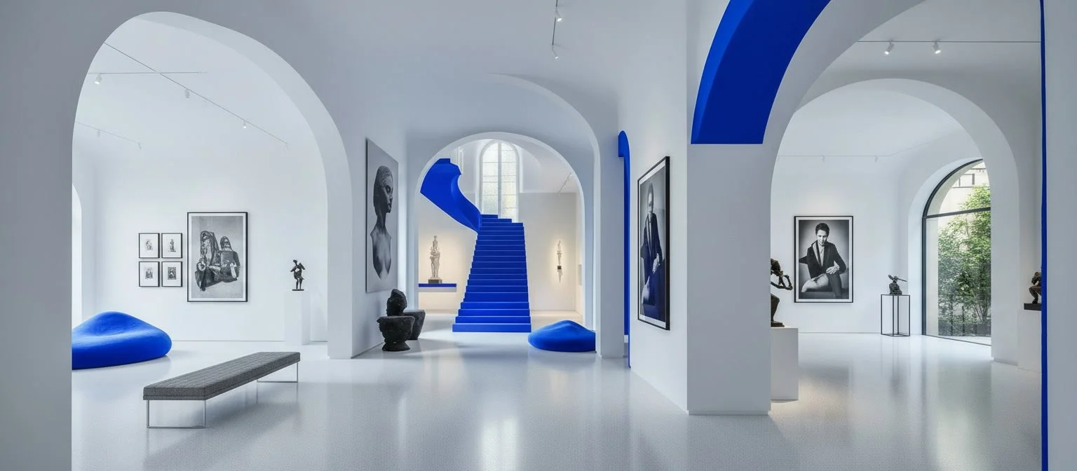 The Blue Dream is a surreal exploration of space, color, and form, where vivid cobalt blue punctuates a serene white environment. Sculptures, paintings, and furniture merge to create a dreamlike journey, guiding visitors through bold contrasts of scale, texture, and perspective. Light and shadow interact with the intense blue surfaces, immersing the viewer in a world where art, architecture, and perception converge.